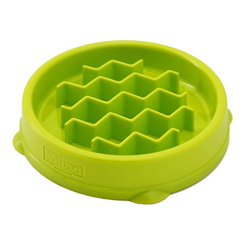ボウルの中のウェーブ状の突起が食べるスピードを抑えてくれる仕組みです。
