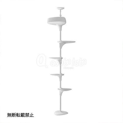●本製品は、床と天井を利用する突っ張り式の猫用遊具です。設置したい場所の床と天井に十分な強度と、ある程度の広さがあることをご確認の上で設置してください。特に天井には、必ず梁で補強された場所に設置してください。梁が無く天井板だけの部分では、天井板を突き破る恐れがあると同時に、十分な力で支柱を支えきれず、使用中に転倒し製品の破損やケガの原因となります。
