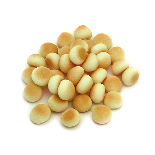 【原材料】馬鈴薯澱粉、砂糖、卵、粉ミルク、キャベツ、香料、カロチン色素、着色料(黄4、青1)