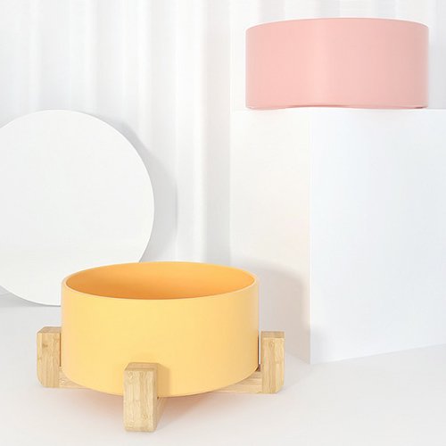 パステルカラーのセラミックボウル&取り外し可能なバンブースタンドセット★