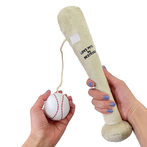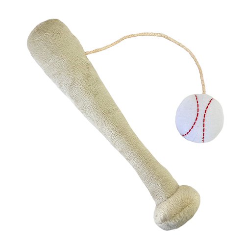 野球バットと野球ボールが紐で繋がった、ユニークなドッグトイです♪