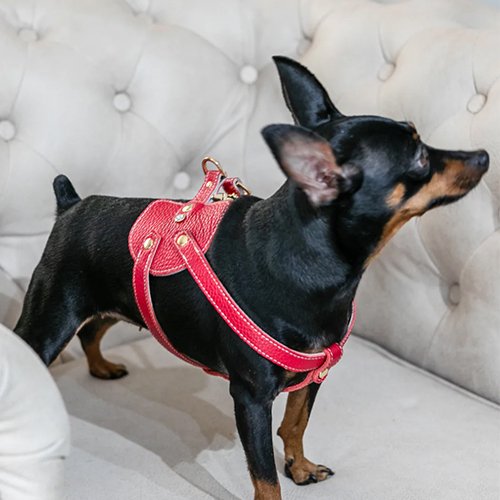 ミニチュアピンシャーやジャックラッセルテリアに最適な、本革ボディベルト(ハーネス)