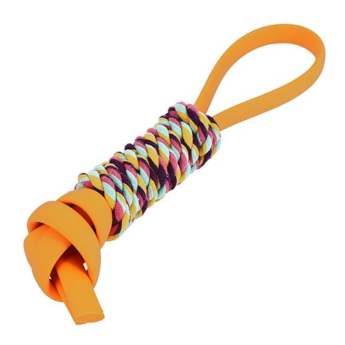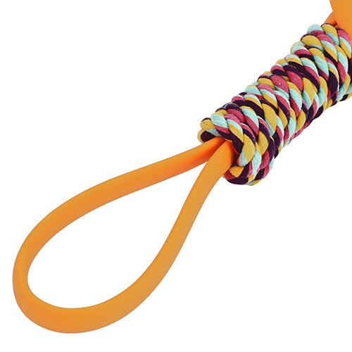 適度な弾力かつ丈夫なTPRゴムの本体に、カラフルなコットンロープをしっかりと巻き付けています。