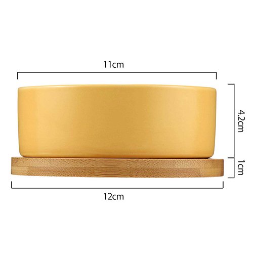 温もりのある色合いの陶器と竹製のトレイがセットになったペット用食器です。