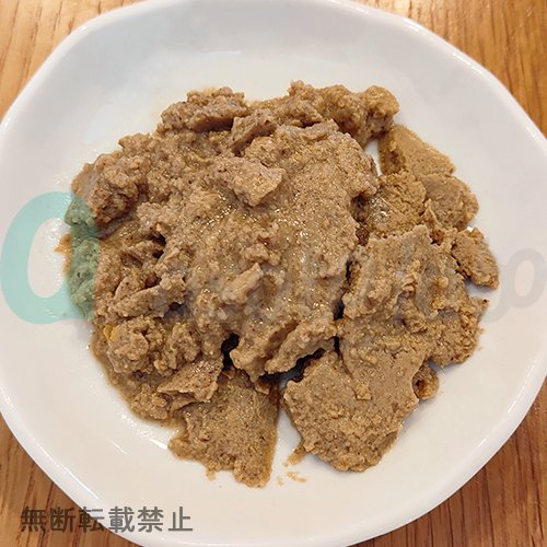 【保証分析値】蛋白質 6.4%以上、脂質 1.8%以上、粗繊維 0.3%以下、灰分 1.2%以下、水分 81.6%以下