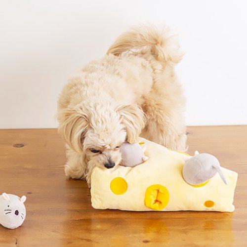 チーズの穴の中におやつを隠せば、知育トイとしても楽しめます。