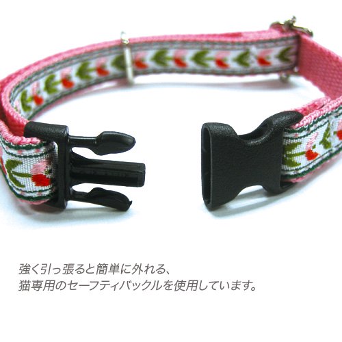 引っかかっても安全なセーフティバックル仕様の猫専用首輪
