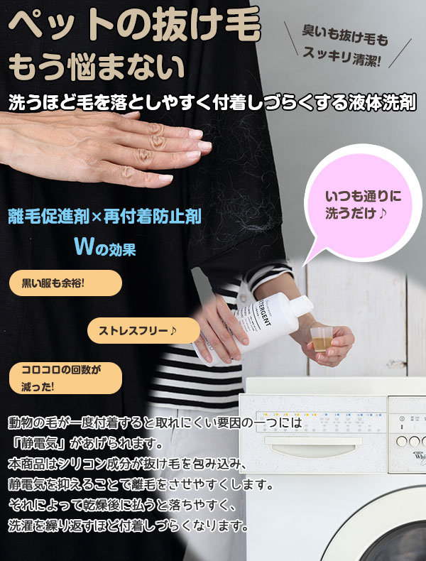毛が付きにくく、落ちやすくなる衣類用洗剤