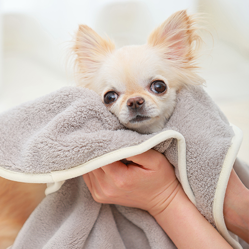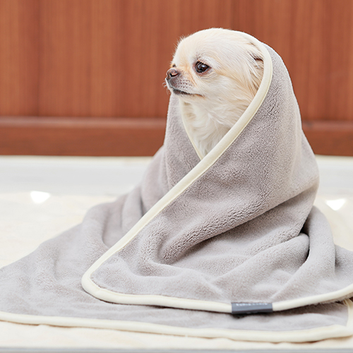 ふわふわのマイクロファイバー生地が、被毛についた水分をしっかり吸収します。
