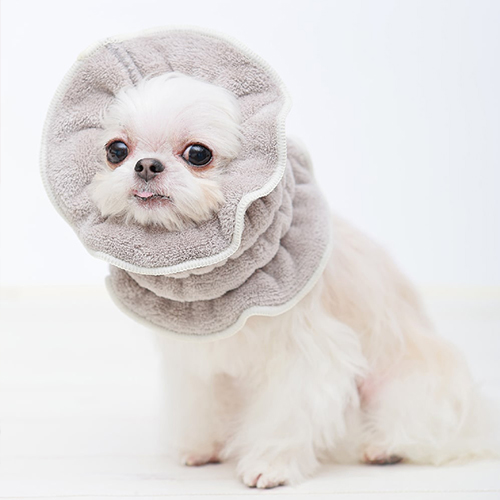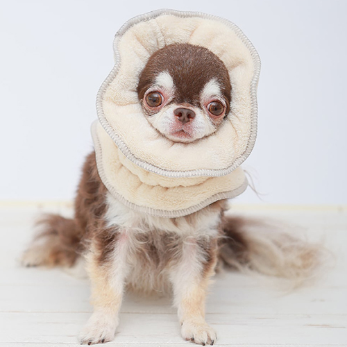 ●お耳が長い子や毛量が多い子は、からだを乾かしている間スヌードを付けておくとお顔回りのドライングの時短に