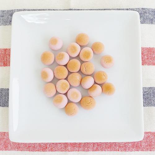 【原材料】馬鈴薯澱粉、砂糖、鶏卵、粉ミルク、ブルーベリーペースト、クチナシ色素、香料