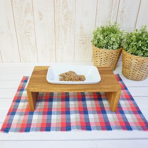 浅く広く作られたテーブルと器は、ご飯の時にネコのひげが汚れにくいように設計されています。