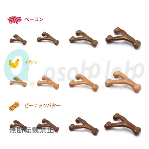 3つのフレーバー、4つのサイズから選ぶことができるので、ワンちゃんのサイズや好み、成長に合わせてピッタリなものがきっと見つかります。