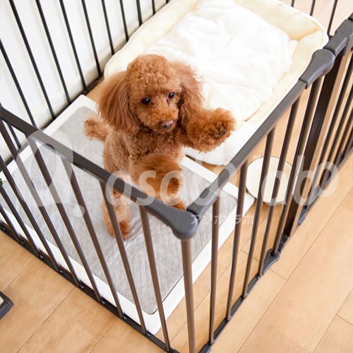 ※特に仔犬の場合はフェンスを通り抜けてしまうことがありますので、仔犬の時期は周りを段ボールなどで塞ぐといった対策が必要になります。