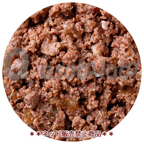 ラビット 28.2%、ラビットその他の部位 18.8%(肝臓)、ターキー 23.5%、ターキーその他の部位 23.5%(心臓、胃、首)、マンゴー 5%、キャットニップ 0.5%、有機キクイモ 0.5% ※タウリン100mg(100gあたり)