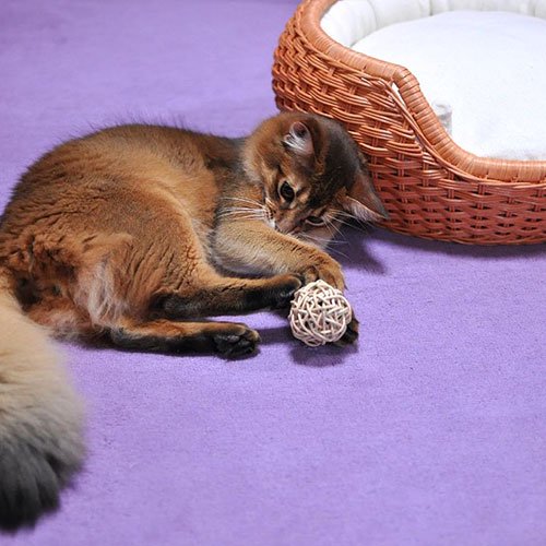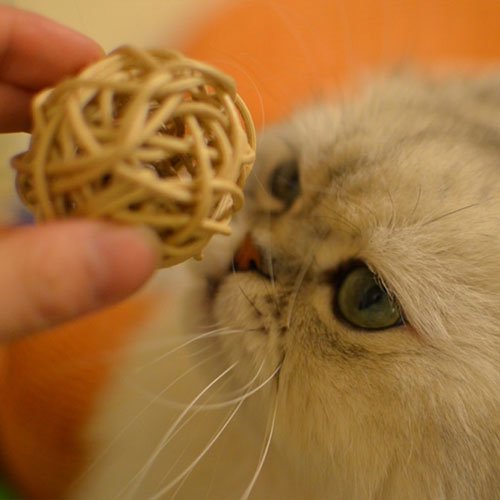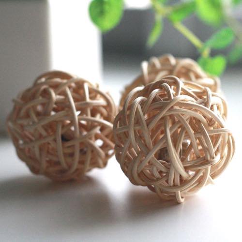 ネコちゃん用のラタンボールはシンプルに丸く編み上げたボールの中に金属製の鈴が入っています。