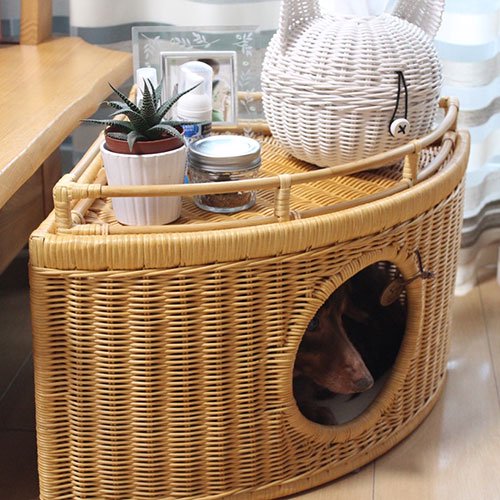 お部屋のコーナーに置いて頂きやすい扇型のラタンハウス。