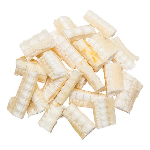 ・小型犬や歯が弱いワンちゃんの場合、細かくちぎってから与えてください。
